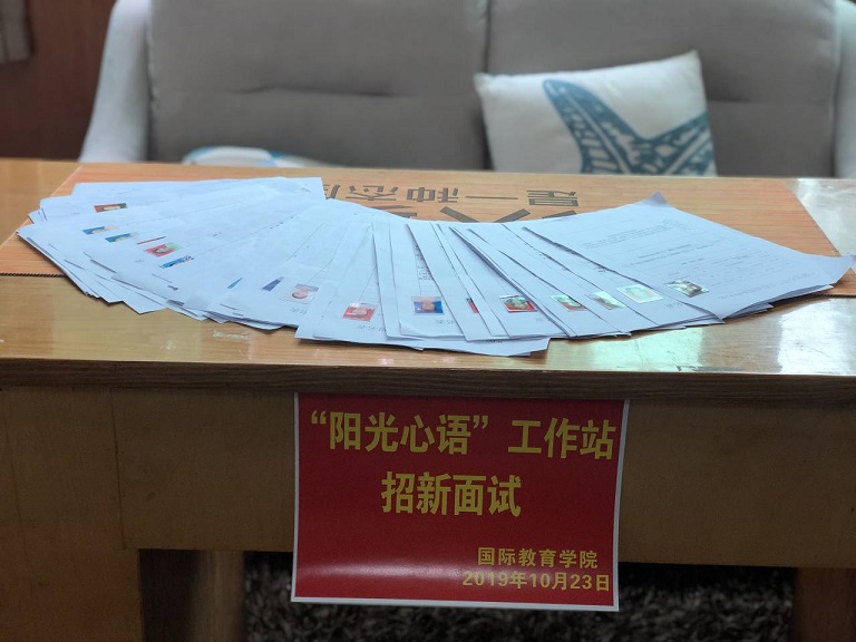 2019年10月23日中午一点williamhill威廉希尔中文网站“阳光心语”工作站新一轮招新面试活动于行政楼311教室召开。阳光心语工作站站长丁玮老师以及工作站负责人郭猛、李垲熠、李珂均出席了本次面试并担任面试官。本次招新是为了给工作站注入“新鲜血液”,为同学们提供一个更广阔的学习空间,一个了解并热爱上心理的平台。