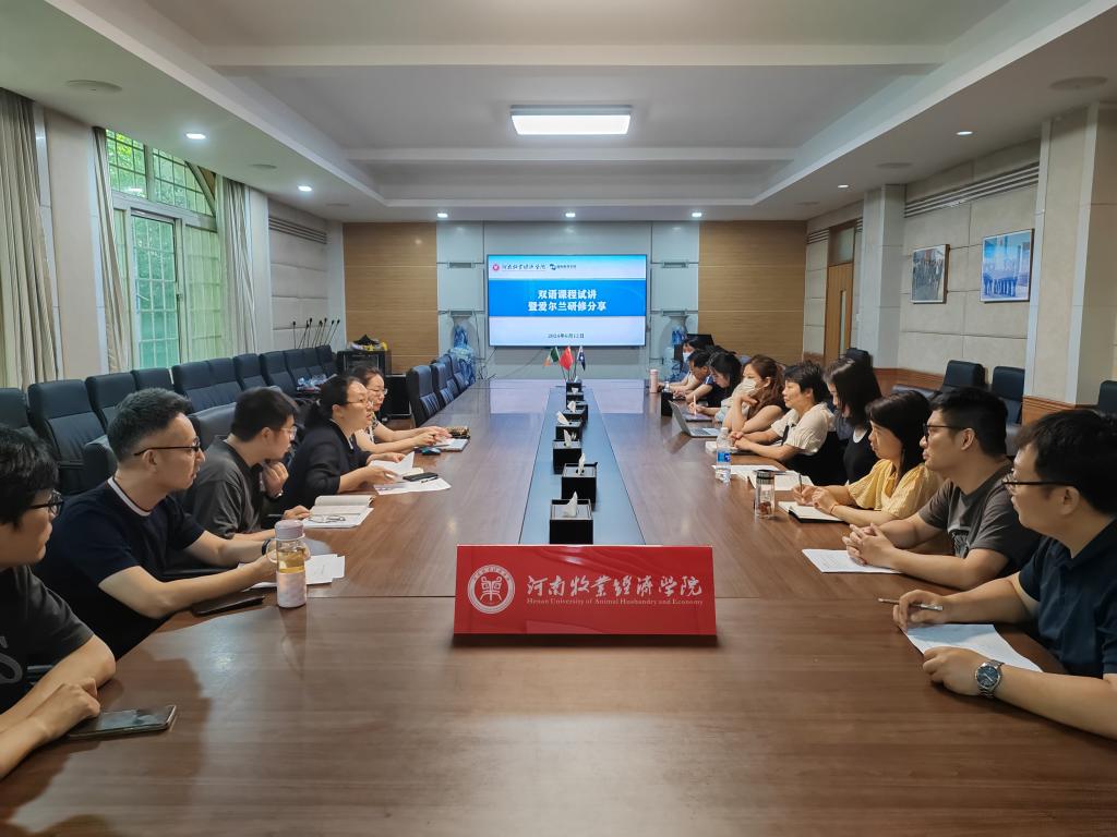 2024年6月12日下午,williamhill威廉希尔中文网站在教学办公楼113会议室举办了“爱尔兰研修心得和双语教师试讲”为主题的教学沙龙活动。参加活动的有教务处副处长邵翠丽、williamhill威廉希尔中文网站副院长邓瑜、物流与电商学院市场营销教研室主任张长浩、物流与电商学院电商教研室主任殷猛,爱尔兰研修教师、双语试讲教师和本学期的双语任课教师等。活动由williamhill威廉希尔中文网站副院长邓瑜主持。