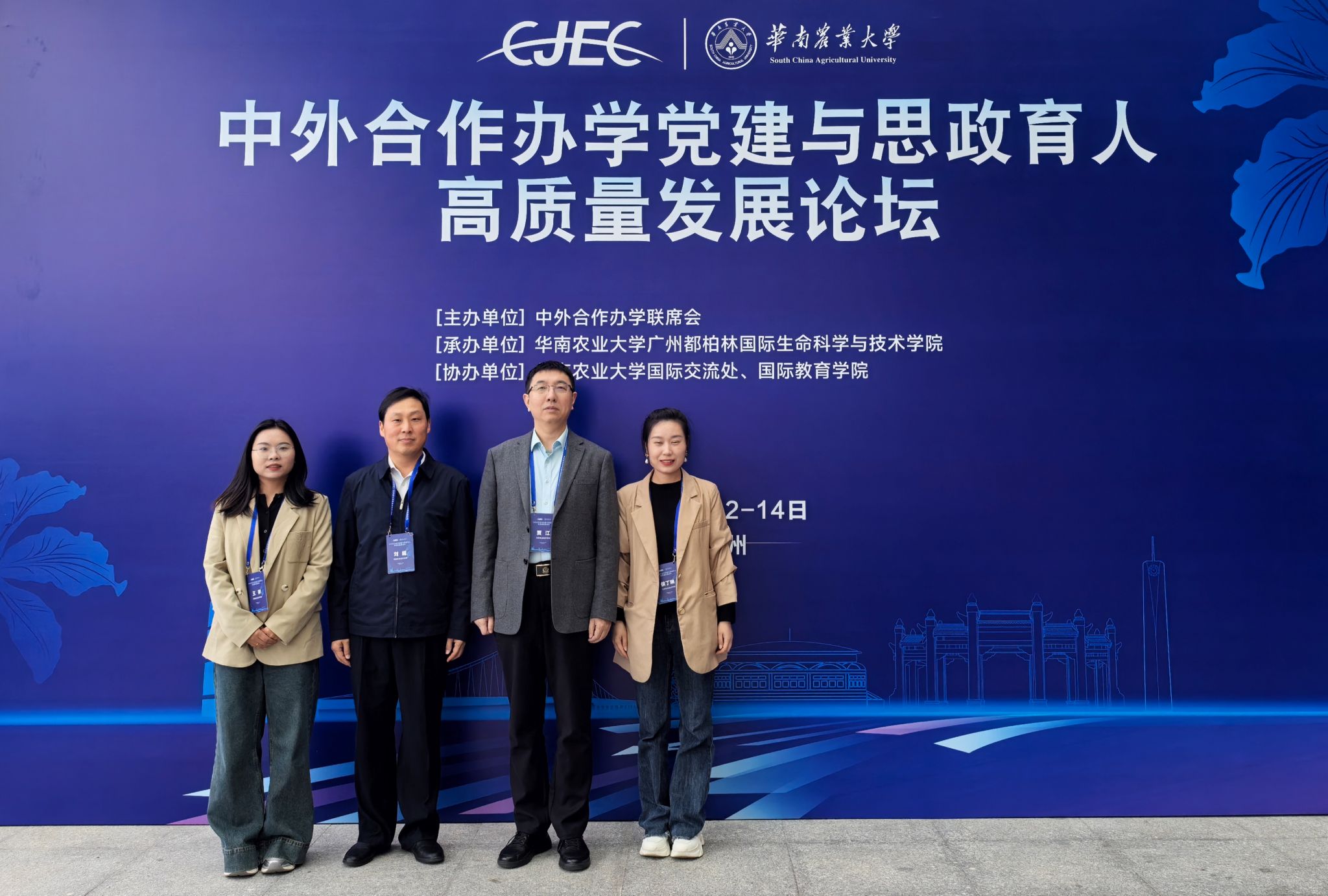 近日,由中外合作办学联席会主办、华南农业大学都柏林国际生命科学与技术学院承办的中外合作办学党建与思政育人高质量发展论坛在广州顺利召开。williamhill威廉希尔官网williamhill威廉希尔中文网站党委书记贾江、党政办主任刘超、团委副书记侯丁琳、辅导员王萍出席会议并参加研讨。