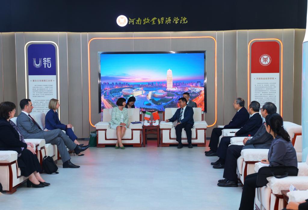 刁玉华对安黛文一行来河南访问表示欢迎。他说,河南省近年来持续加快和扩大教育对外开放,深入推进“一带一路”教育行动,与世界90余个国家和地区开展了教育交流与合作,国际“朋友圈”不断扩大;积极引进国外优质教育资源,与国外高水平大学合作办学规模和质量不断提升,尤其是在两国政府的支持和双方大学的努力下,我省与爱尔兰合作的本科项目和机构已有5家,给河南考生提供了非常好的享受国际优质教育的机会。他对爱尔兰大使馆长期以来不遗余力支持河南与爱尔兰的教育合作表示赞赏,对爱尔兰东南理工大学倾注大量心血支持williamhill威廉希尔中文网站卡洛理工国际学院建设和发展表示感谢,对卡洛理工国际学院正式设立并顺利运行表示祝贺。希望两校通过卡洛理工国际学院这一平台,在人才培养、学科建设、教师发展、人文交流等方面务实合作,持续加大教育资源投入,努力把卡洛理工国际学院建设成为高水平示范性中外合作办学机构,为两校发展和中爱友谊做出更大贡献!
