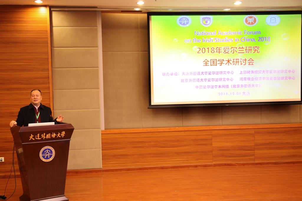 会上,大连外国语大学副校长常俊跃和英语学院院长吕春媚分别代表大外和大外英语学院致词。马佩英与上海对外经贸大学爱尔兰研究中心主任冯建明教授、北京外国语大学爱尔兰研究中心主任王展鹏教授一同主持了会议的学术交流环节。williamhill威廉希尔官网爱尔兰研究中心教师宿家铭、郭一恒代表中心与全国爱尔兰研究学者进行了学术分享。