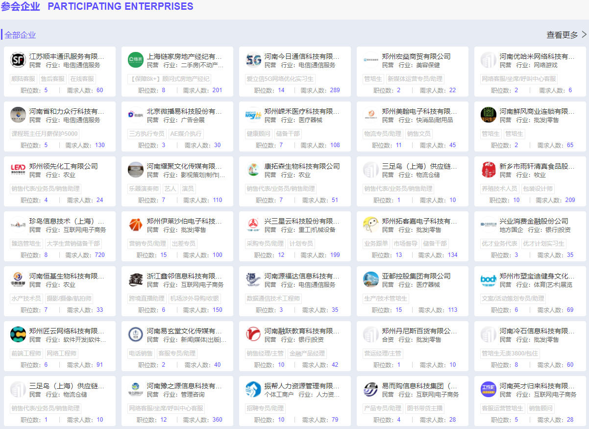 williamhill威廉希尔中文网站在“聘”上出实招,多渠道搭建平台。自3月27日发布williamhill威廉希尔中文网站2023届毕业生双选会信息以来,学院积极联系校企合作单位,并配合就业处完成参会企业资质审核工作,并落实企业招聘需求,对接相关专业毕业班辅导员,及时发布招聘岗位信息,方便毕业生精准就业。本次双选会邀请到江苏顺丰通讯服务有限公司、河南今日通信科技有限公司、上海链家房地产经纪有限公司、河南省和力众行科技有限公司等知名企业单位30余家,提供就业岗位200余个。其中,招聘方向涉及到财务会计、物流管理、市场营销、大数据技术等,招聘岗位主要以出纳、管培生和销售代表、教师等。工作地点以河南省内为主,主要集中在郑州、开封、洛阳、等地,外省单位主要集中在北京、上海、广州等大城市。