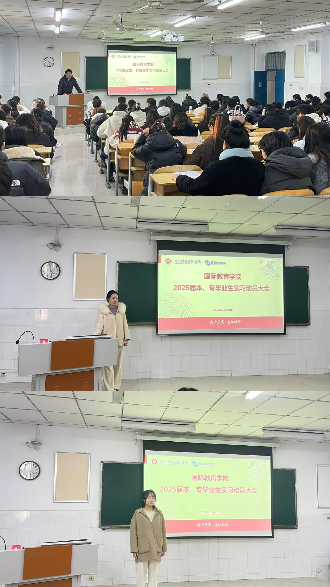 为增强实践教学能力,加大力度宣传就业,满足应用型人才培养需求,充分发挥专业实习对就业的促进作用,引导学生树立正确的就业观,提前进入就业求职状态,12月13日至18日,国际教育学院组织毕业班辅导员先后召开2025届williamhill威廉希尔中文网站本、专科毕业生实习大会,2025届全体毕业生同学近1547人参加。