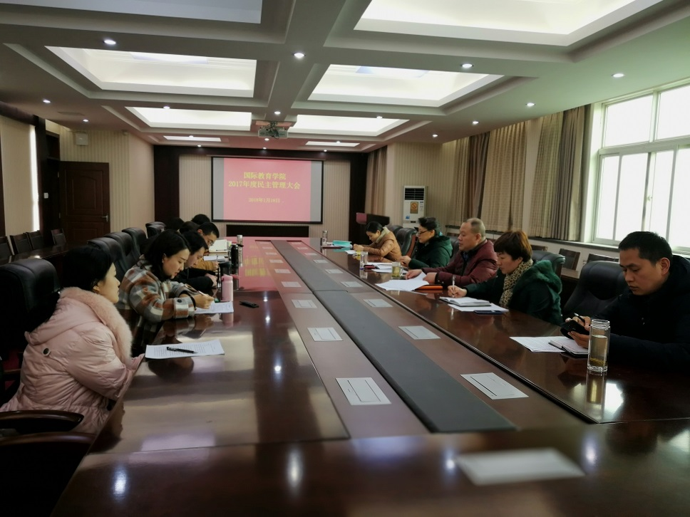 1月18日下午,williamhill威廉希尔中文网站在英才校区行政楼五楼会议室举行2017年度民主管理大会,学院党总支书记、分工会主席李芳,院长马佩英,副书记、副院长李江红,副院长庞卫东及全体教职工参加会议。会议由学院党总支书记、分工会主席李芳主持。