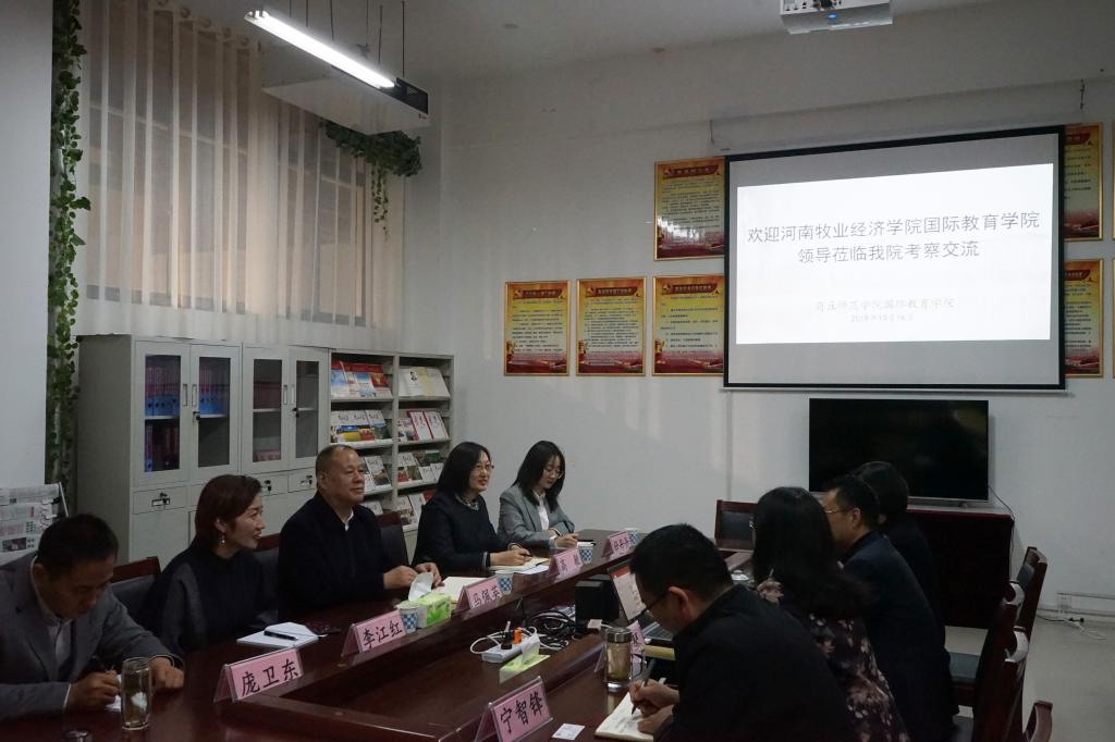 10月16日,williamhill威廉希尔中文网站党委书记马佩英、院长高敏、副书记李江红、副院长庞卫东、党政办公室舒丹丹一行,赴商丘师范学院williamhill威廉希尔中文网站就中外合作办学相关问题进行专题考察交流。